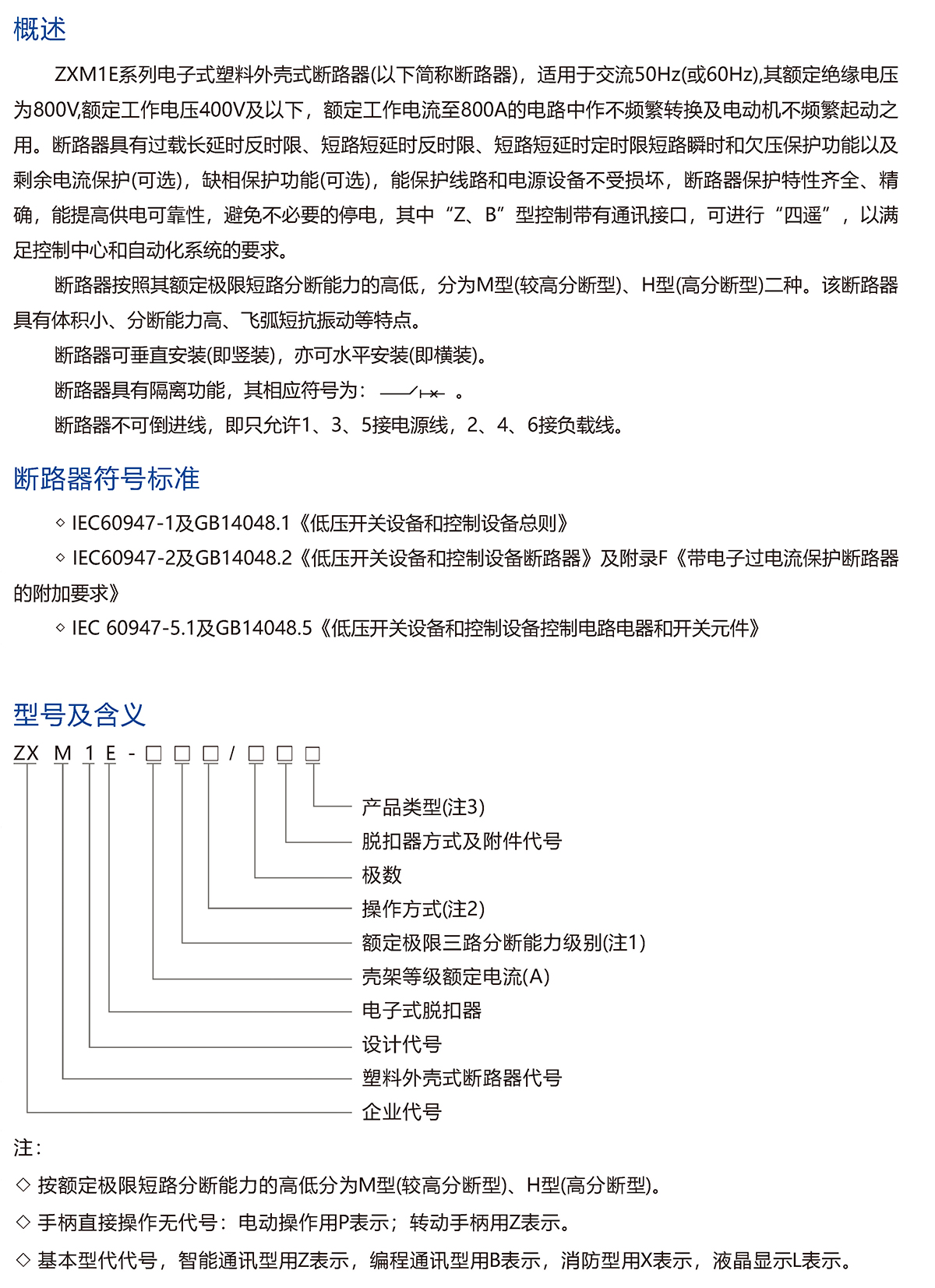 ZXM1E系列電子式塑料外殼式斷路器(以下簡稱斷路器),適用于交流50Hz(或60Hz),其額定絕緣電壓